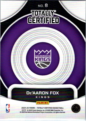 2024-25 Panini Totally Certified #8 De'Aaron Fox On Target