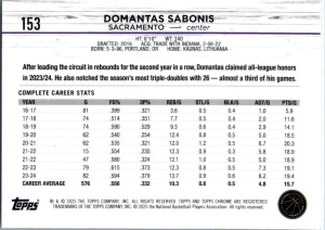 2024-25 Topps Chrome Sapphire #153 Domantas Sabonis