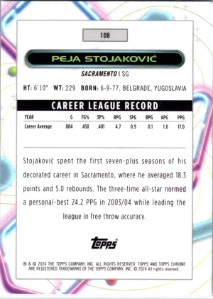 2023-24 Topps Chrome Cosmic #108 Peja Stojaković