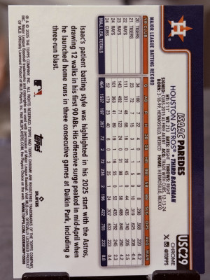 2025 Topps Chrome Update #USC29 Isaac Paredes /150 Blue Refractor