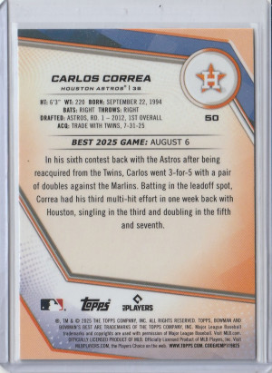 2025 Bowman's Best Wave Refractor Carlos Correa