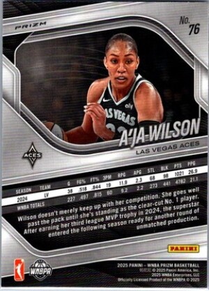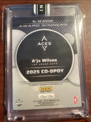 2025 Panini Instant WNBA Award Winners A’ja Wilson 1/1 Auto Las Vegas One of One