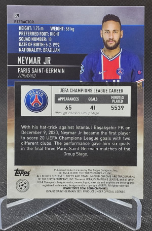 2020-21 Stadium Club Chrome UEFA Champions League Refractors #89 Neymar Jr