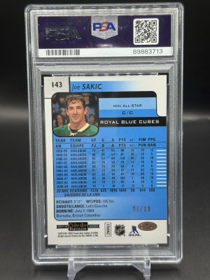 2017-18 O-Pee-Chee Platinum Joe Sakic Royal Blue Cubes 01/99 PSA 10 OPC Plat 143