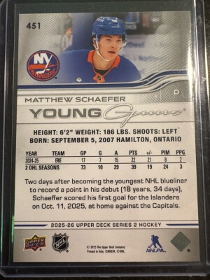 2025-26 Upper Deck Series 2 YOUNG GUNS RC Matthew Schaefer #451