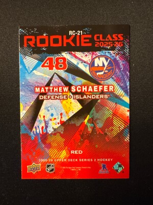 2025-26 Upper Deck Series 2 Matthew Schaefer Rookie Class Red