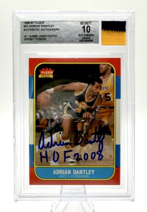 1986-87 Fleer Premier ADRIAN DANTLEY Jersey Fusion PATCH AUTO HOF BGS 10 Auto