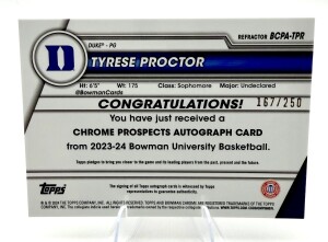 2023-24 Bowman Chrome U Prospects TYRESE PROCTOR 1st Bowman AUTO /250
