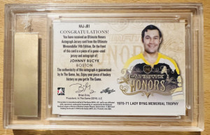 2014-15 Leaf ITG Ultimate Memorabilia Honors Auto Jersey Platinum 1/1 John Bucyk