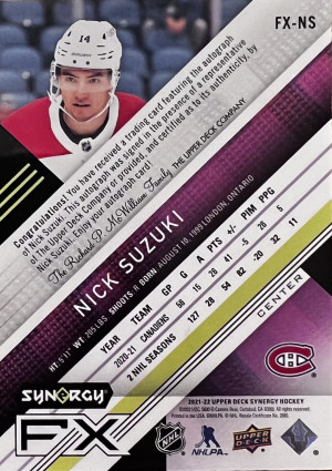 2021-22 Upper Deck Synergy FX Green AU /99, Nick Suzuki