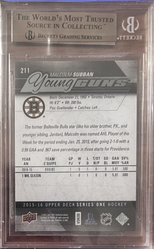 2015-16 Upper Deck YG RC BGS 9.5, Malcolm Subban