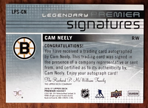 2016-17 Upper Deck Premier Legendary Signatures Silver /5, Cam Neely