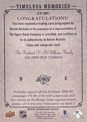 2018-19 UD Chronology Timeless Memories AU, Bernie Nicholls