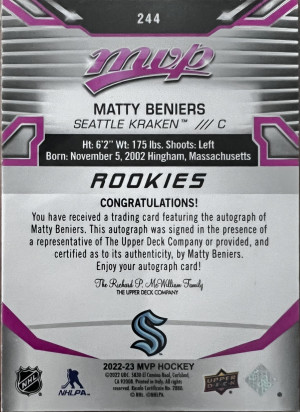2022-23 Upper Deck MVP Rookies Magenta Autograph, Matty Beniers