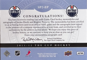 2011-12 Upper Deck The Cup Dual Signature Patches /35, Jordan Eberle / Magnus Paajarvi