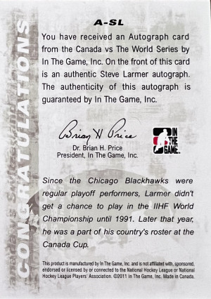 2011-12 ITG Canada Vs The World Autograph, Steve Larmer