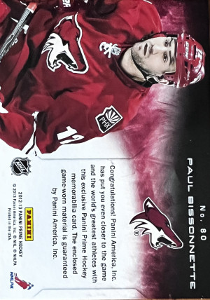 2012-13 Panini Prime Prime Colors Logo /22, Paul Bissonnette