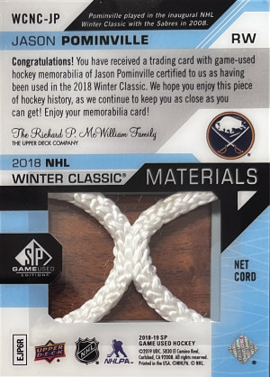 2018-19 Upper Deck Winter Classic Materials Net Cord /35, Jason Pominville