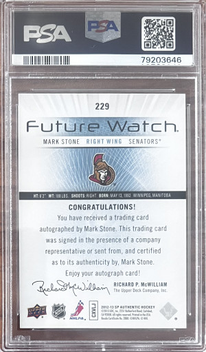 2012-13 SP Authentic Future Watch RC AU /999, Mark Stone PSA 10