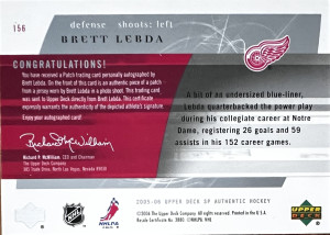 2005-06 SP Authentic Future Watch Auto Patch Limited /100, Brett Lebda