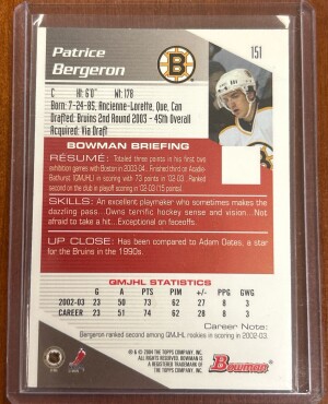 03/04 Patrice Bergeron Bowman Gold Rookie