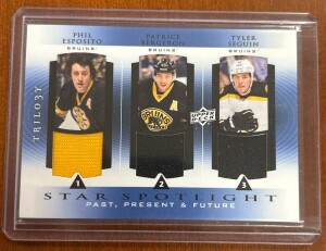Phil Esposito/Patrice Bergeron/Tyler Seguin Triple Jersey Card