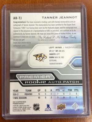 Tanner Jeannot Premier Rookie Patch Auto 165/249
