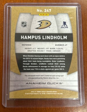 Hampus Lindholm Panini Prizm Black Rookie Auto