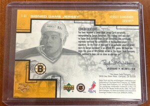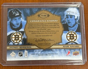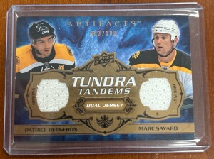 Patrice Bergeron/Marc Savard Tundra Tandems 63/100 Jersey Card