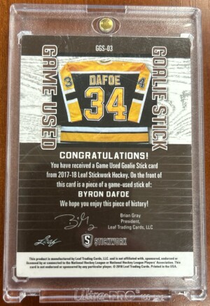 Byron Dafoe Leaf Stickwork Game Used Stick 8/15