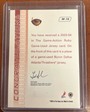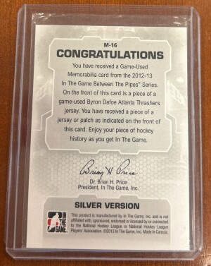 Byron Dafoe Thrashers 1/1 Jersey Patch