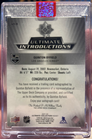 2021 Ultimate- Quinton Byfield Ultimate Introductions Black Auto /10