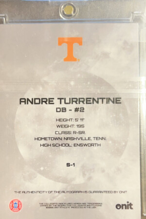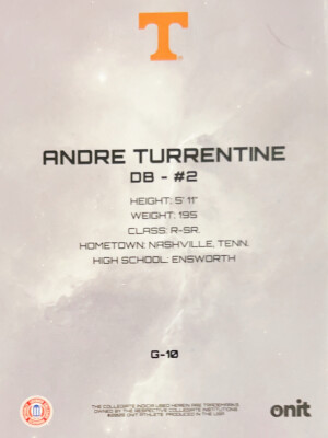 2025 Onit Tennessee Football Andre Turrentine #B-1 Purple /25