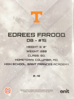 2025 Onit Tennessee Football Edrees Farooq #B-18