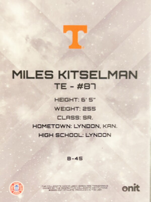 2023 Onit Tennessee Football Miles Kitselman #B-45 Purple /25