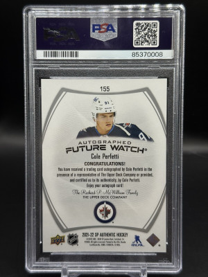 2021-22 SP Authentic Cole Perfetti Future Watch Auto /999 PSA 10