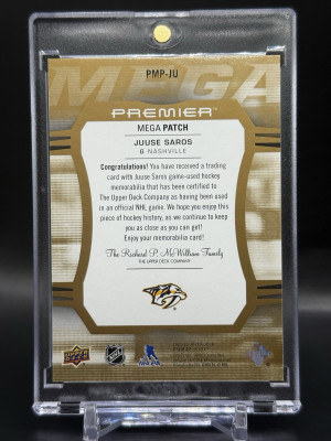 2021-22 UD Premier Juuse Saros Mega Patch Sleeve Number 4/6 Game Used