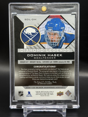 2021-22 UD Black Diamond Dominik Hasek Diamond Legends Auto /10 #BDL-DH