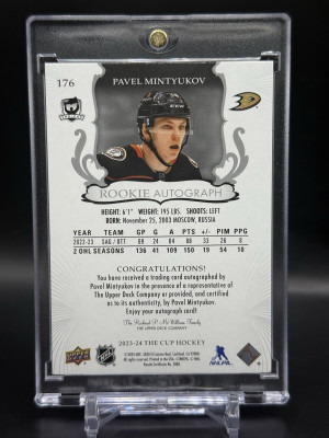 2023-24 UD The Cup Pavel Mintyukov Rookie Gold Foil Auto /36 #176