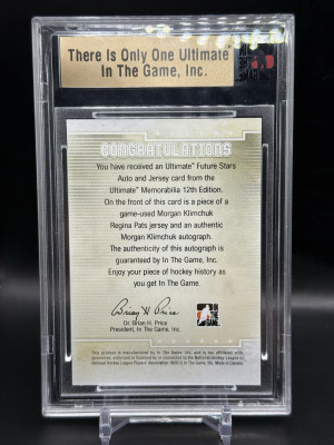 2012 In The Game Ultimate Morgan Klimchuk Future Stars Auto Patch Gold 1/1