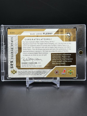 2003 SPX Radiance Marc-Andre Fleury Rookie Stars Jersey Auto Rookie Gold /50 RPA