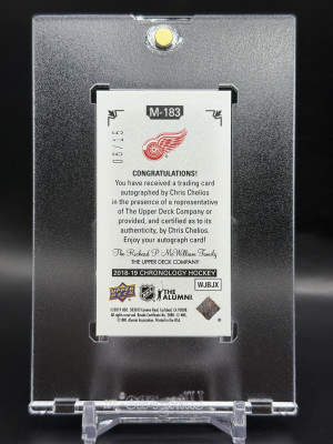 2018-19 UD Chromolgy Chris Chelios Time Capsules Mini Auto /15 #M-183