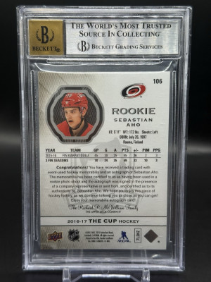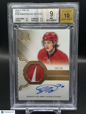 2016-17 UD The Cup Sebastian Aho Rookie Patch Auto Gold /24 RPA BGS 9/10 Auto