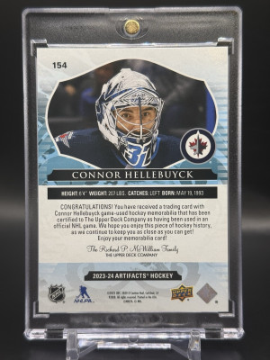 2023-24 UD Artifacts Connor Hellebuyck Dual Fight Strap /10 Game Used #154